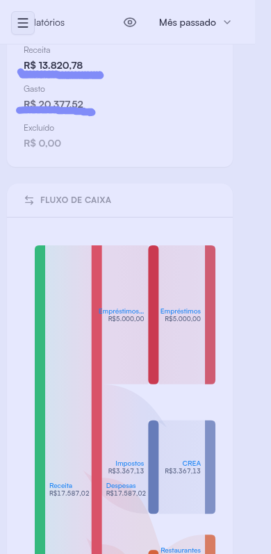 Os valores de receitas e despesas do diagrama de Sankey não estão batendo com os valores de outros relatórios.