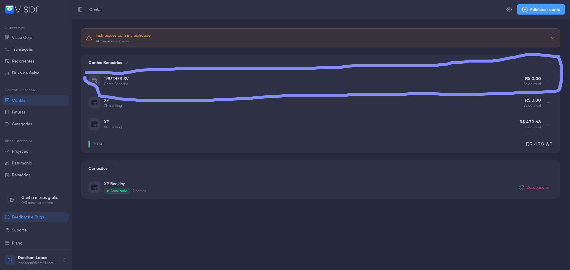 eu não consigo excluir a conta bancaria que foi adicionada manualmente. me permita a exclusão