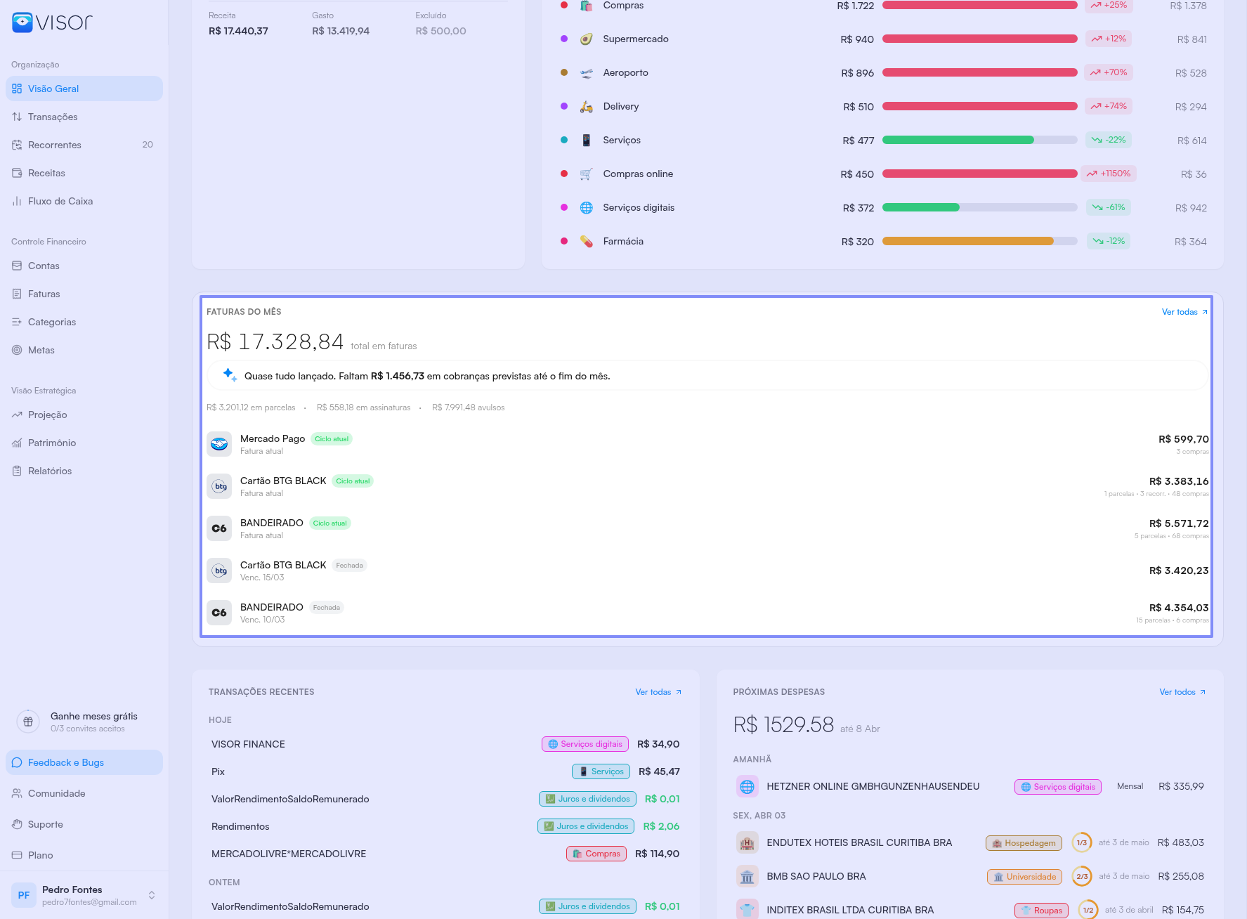 As faturas já pagas estão sendo exibidos como “faturas do mês” junto às a vencer.