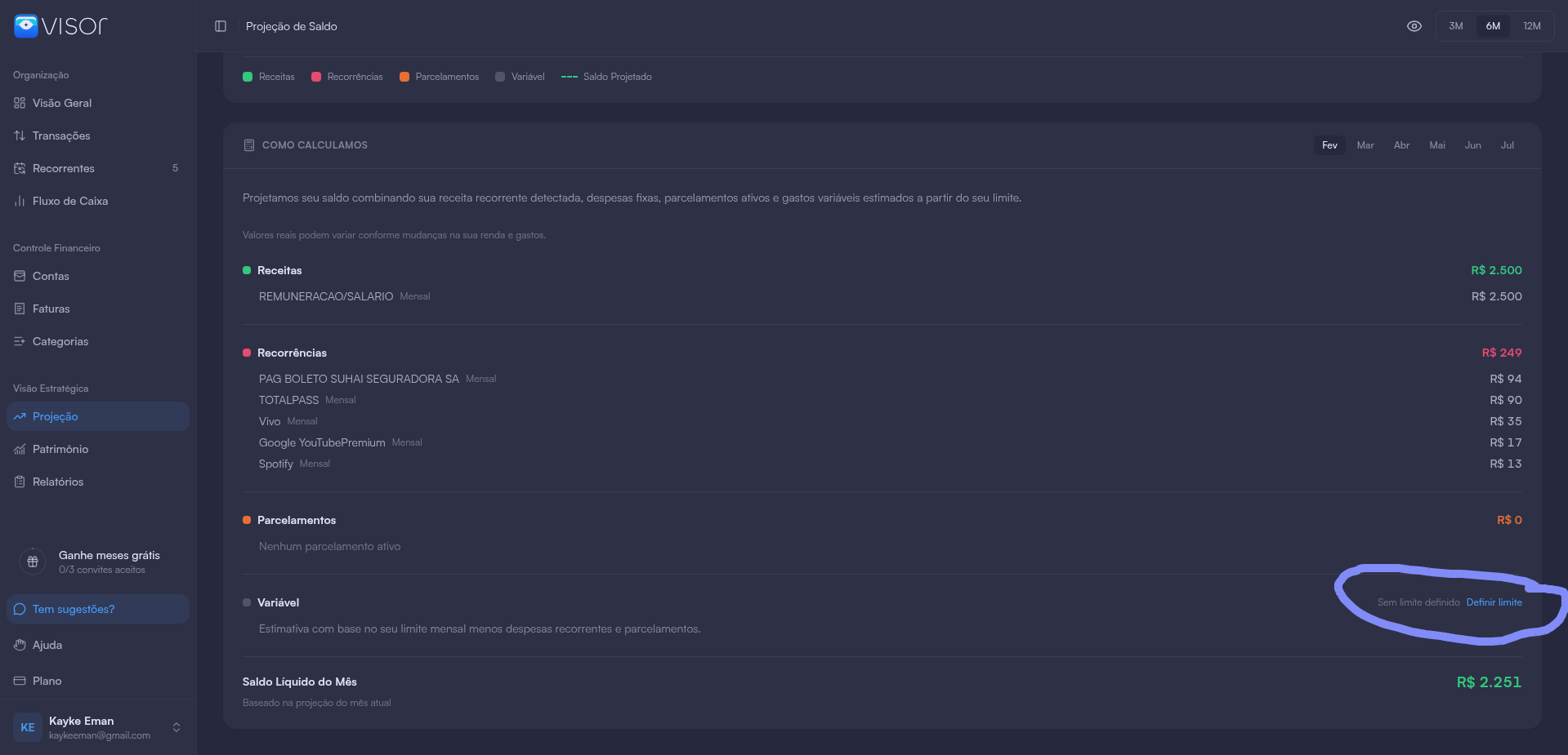 Defini os limites e valores de algumas categorias variáveis, mas não está constando esses valores no gráfico de projeções.