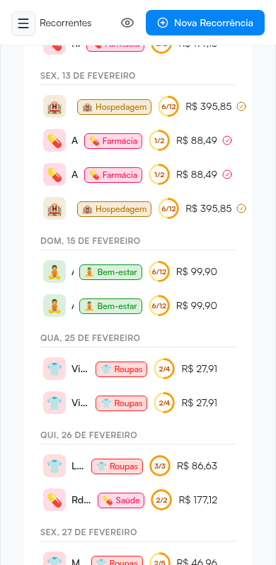 Estão aparecendo gastos recorrentes duplicados nesta tela.